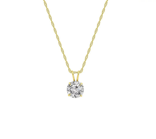 Solid Gold 1.00 cttw Round Cut Prong Set Pendant w/ Chain